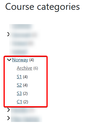 If you are looking for a specific course that are not under My courses, go to Home and scoll down until you find "Course categories". From here, click "Norway".