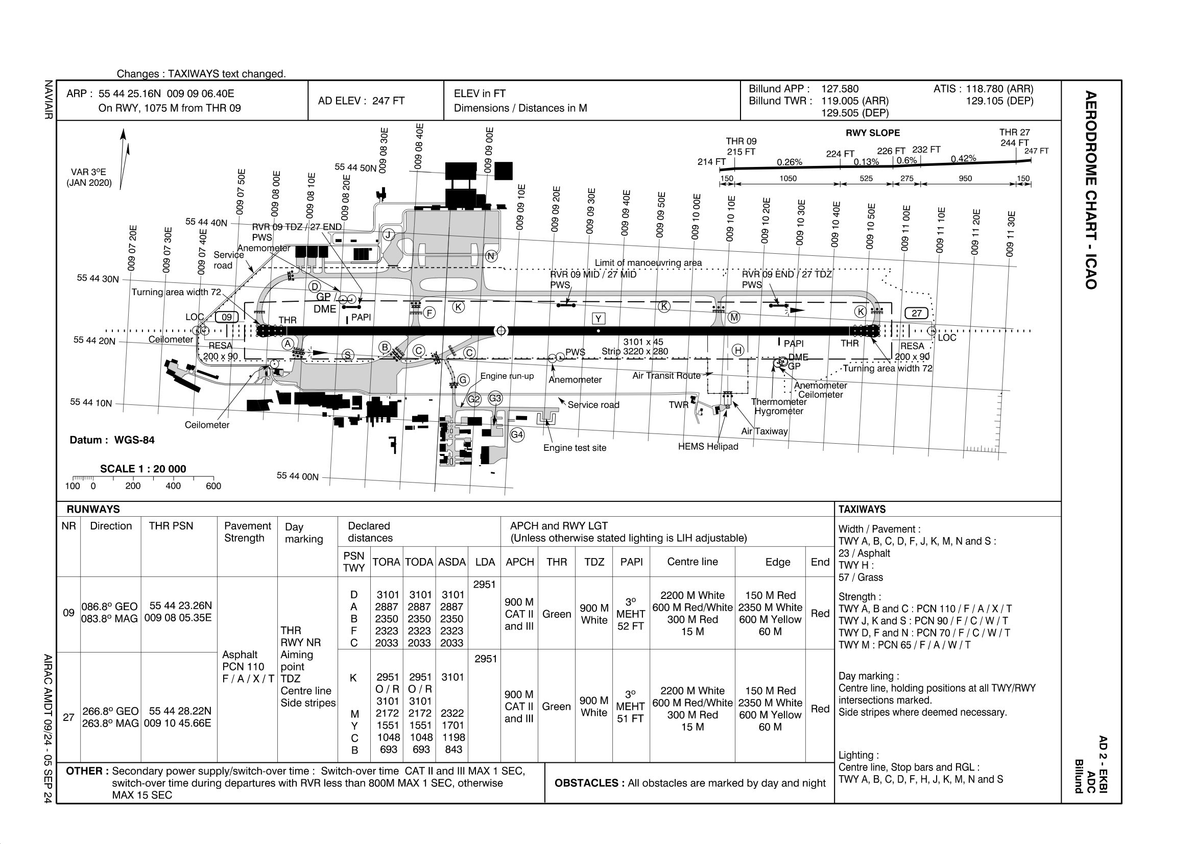 During direct crosswind situations i.e. winds 180 or 360, 09 may be used for departure and 27 for landing, to ensure shorter taxi times.