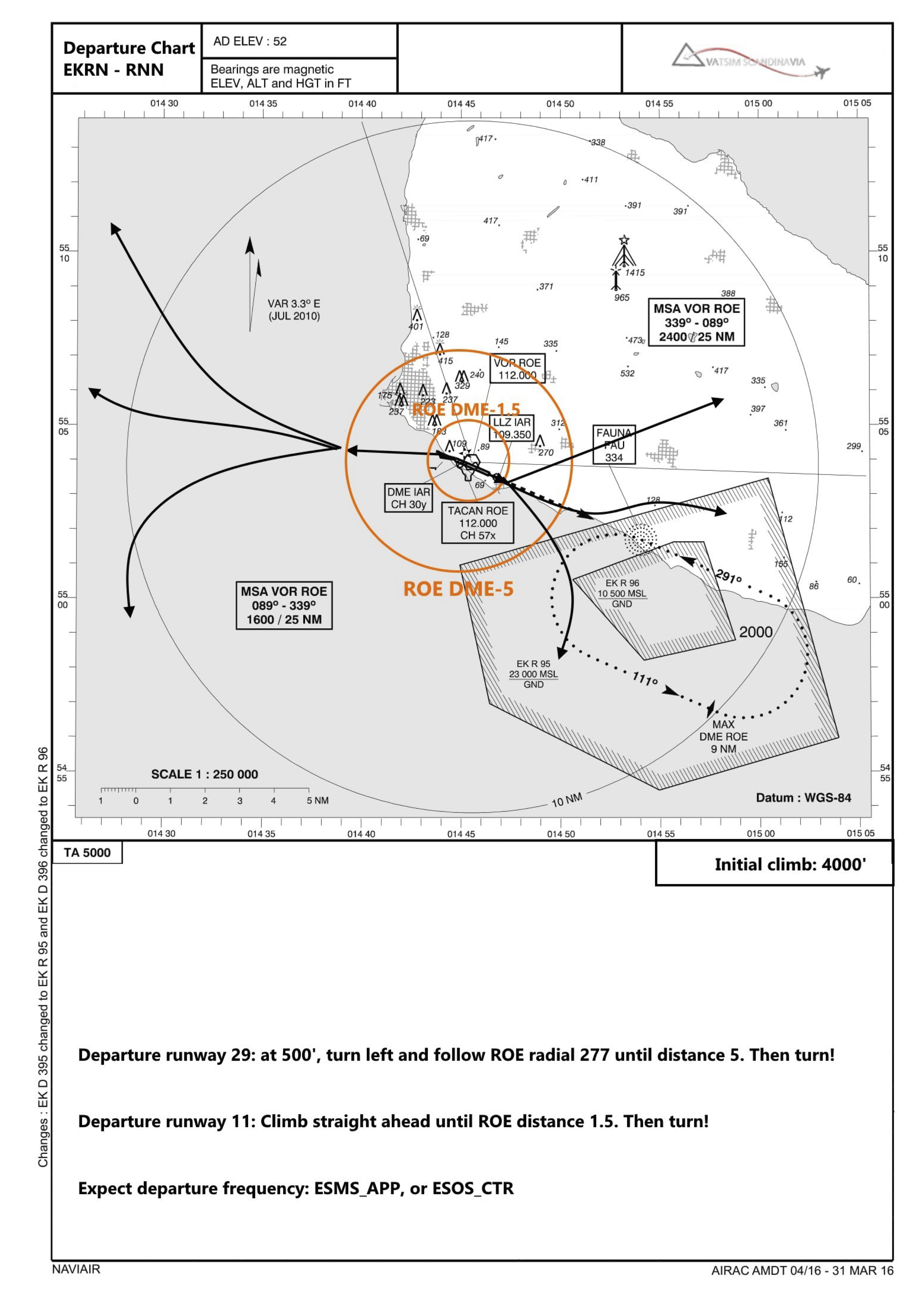 As there are no SIDs in Rønne your departure clearance will sound like this: