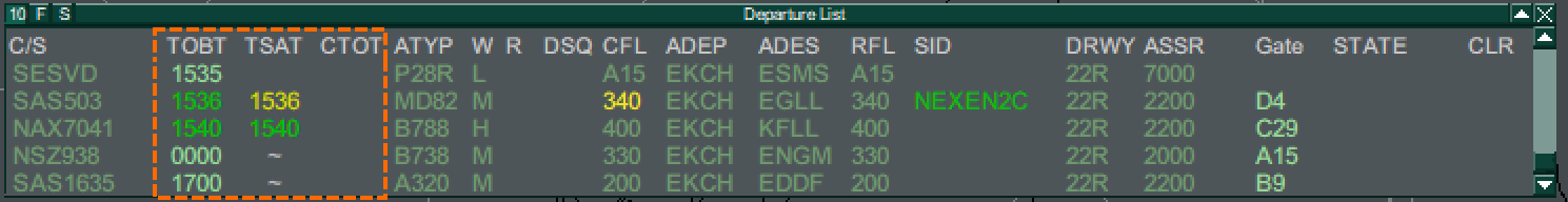 - CTOT: Is Green, Orange or Red depending on the type of restriction triggering the CTOT.
